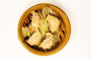 Ravioli con gamberi e pancetta cotti al vapore (allergeni: 1,2,3)